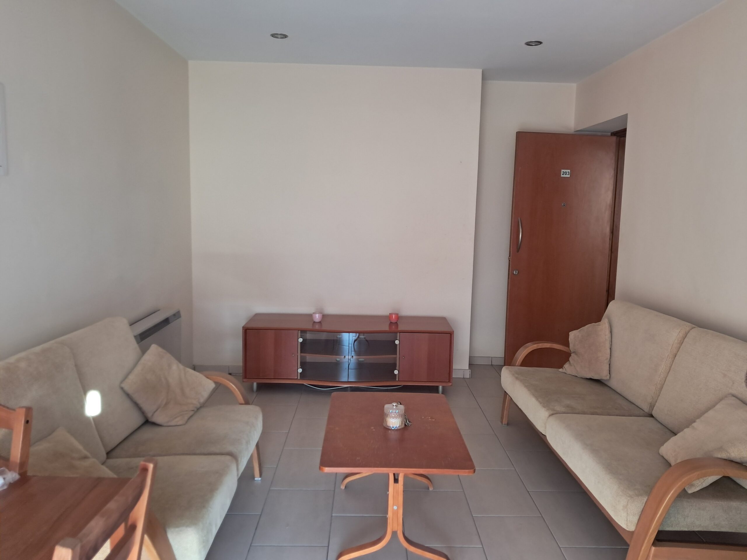 Located near the “Mega” TV station, a supermarket, a pharmacy, and a bus stop (Ag. Eleftheriou Street).